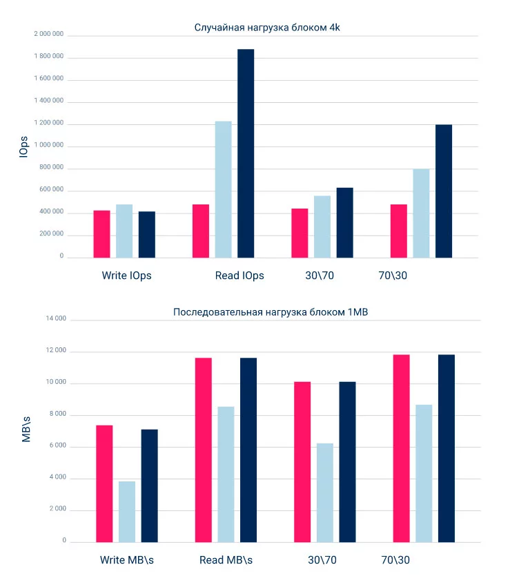 При работе с твердотельными накопителями RAIDIX использует ERA Engine — инновационный программный массив с технологиями параллелизации вычислений и lockless-архитектуры. Он позволяет системе получать скорость, соотносимую с пределом производительности используемых flash-накопителей. При этом высокая скорость операций ввода-вывода и минимальное время отклика обеспечиваются даже в режиме смешанной нагрузки.