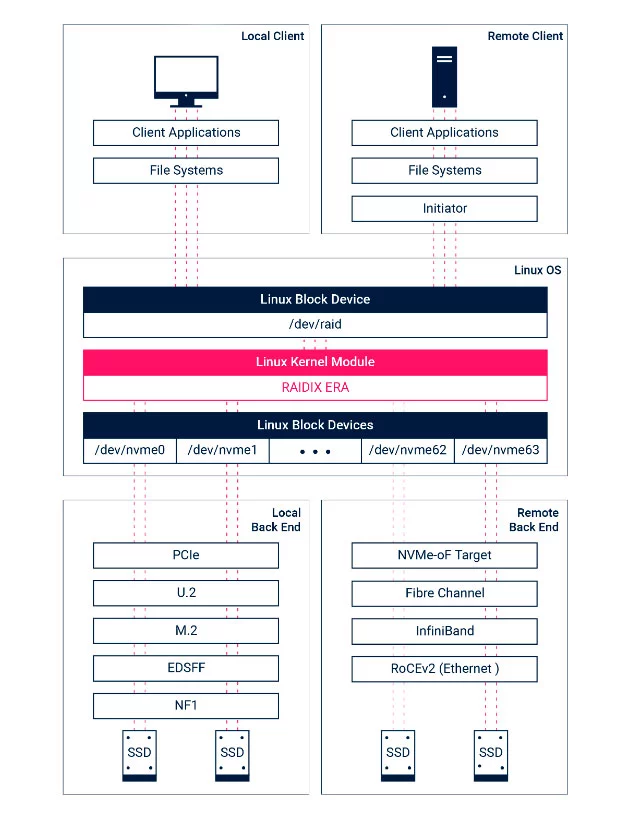 RAIDIX ERA — это программный RAID, который представлен в виде модуля ядра Linux и управляющей утилиты.